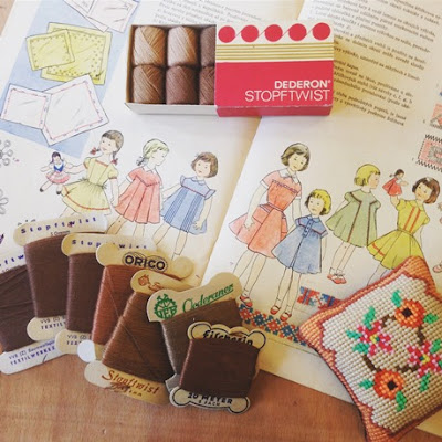 東ドイツの手芸糸。台紙の文字や箱が可愛かったのでパケ買い。気づいたら茶系ばかり。茶色い糸を沢山使う方はぜひ。